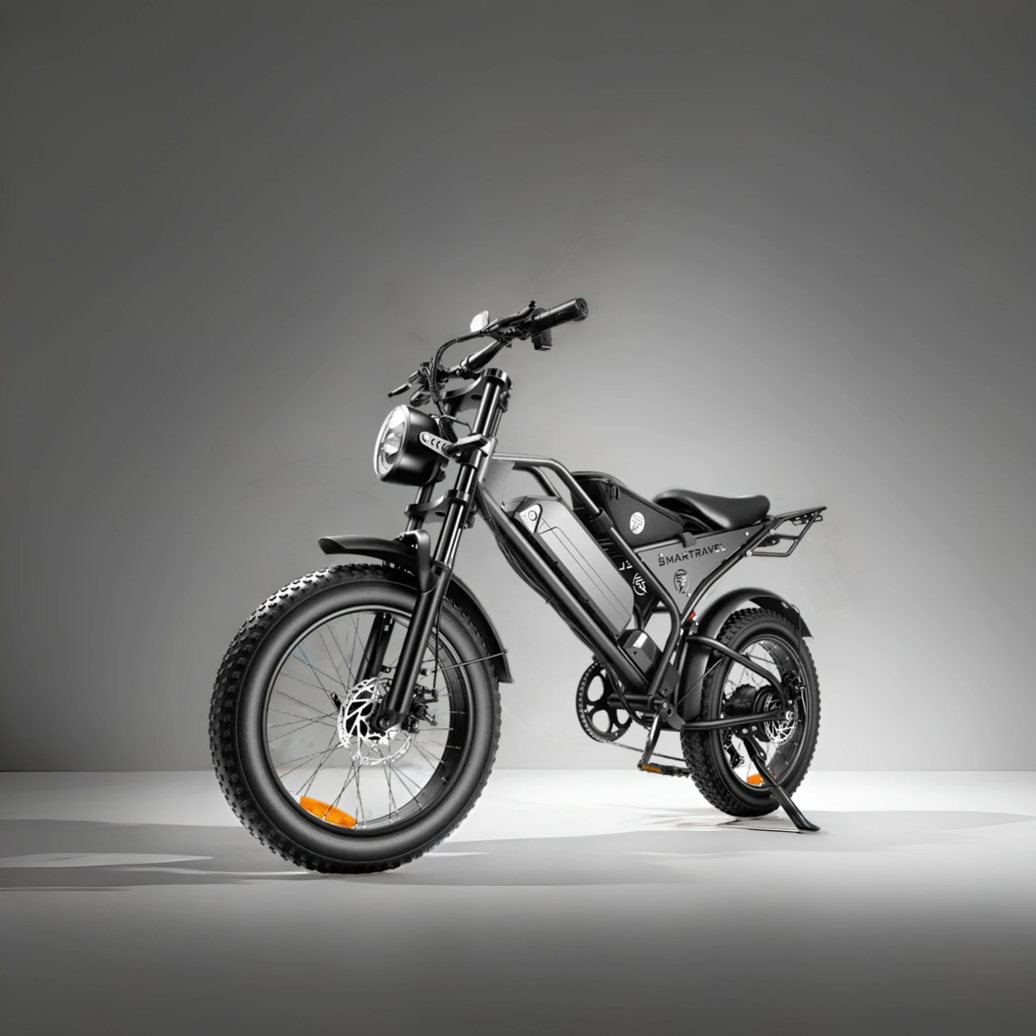 SMARTTRAVEL Electric Bike delivers the future of commuting with its sleek black frame and advanced technology. Featuring a powerful motor and high-capacity battery, this e-bike ensures efficient travel over various terrains. Integrated disc brakes provide superior stopping power for safety, while the built-in front light enhances visibility during night rides. Ideal for urban explorers and eco-conscious riders, SMARTTRAVEL combines style with functionality, making every journey an enjoyable experience. Embrace the perfect blend of innovation and practicality with SMARTTRAVEL, designed for today's modern adventurer.
